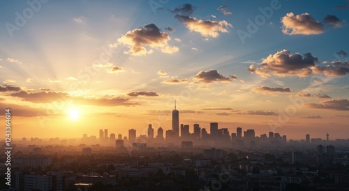 Sunset, Sky clouds over sea in the Evening with Orange, Yellow Gold sunlight in Golden hour and Dramatic fluffy, Horizon sea Summer sky landscape, Dusk sky background