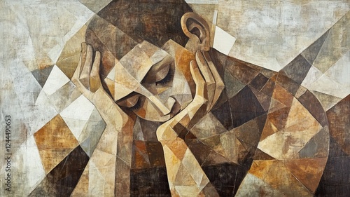 Abstract geometric portrait of a contemplative figure in earth tones