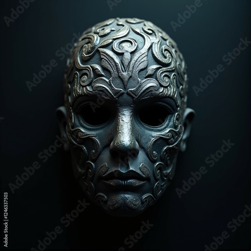 A Mysterious Ornate Mask With Intricate Carvings And Hollow Eyes Creating An Ominous Presence.