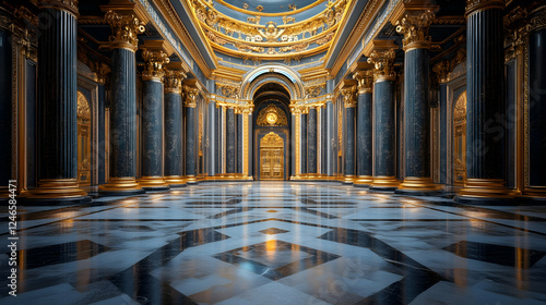 Luxurious Royal Hallway, Majestic Interior, Architectural Design, 3D Rendering, Background Image