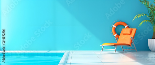Basen z leżakiem i kołem ratunkowym w słoneczny dzień.