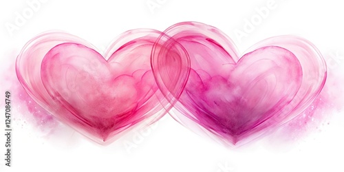Long Exposure Pink Watercolor Hearts, Abstract Art, Hand Drawn