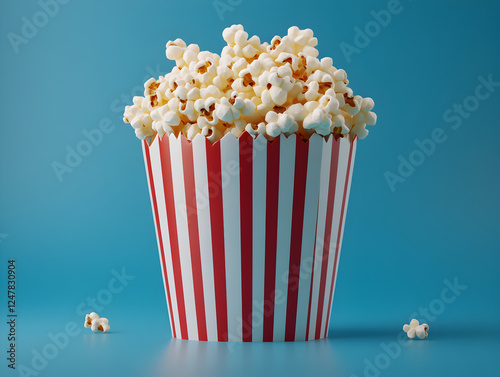 Delicious Tasty Popcorn: Irresistible Red and White Striped Snack for Movies, Theaters, and Parties - Fresh, Fluffy, Crunchy Treat for Fun Entertainment and Leisure Enjoyment