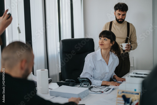Professionals working together in an office setting, showcasing collaboration, productivity, and teamwork in a business environment.