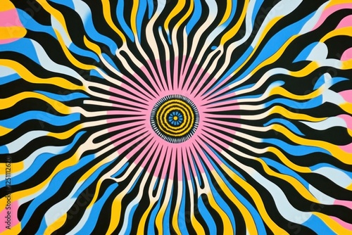 Vibrant abstract explosion of colors with swirling patterns in blue, yellow, and pink, creating a dynamic visual energy ideal for modern design projects