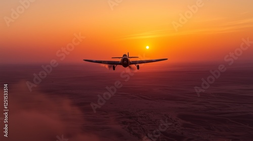 Warplane Against the Backdrop of Dusty Twilight Wasteland