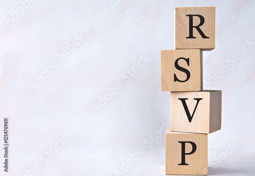 RSVP - acronym on wooden cubes on a white background