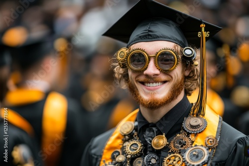 A steampunk-inspired commencement ceremony where students receive mechanical diplomas printed from brass gears and steam-powered machines