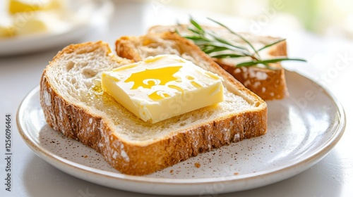 Indulgent butter spreads on warm toast kitchen setting food photography morning light close-up view richness and texture revealed