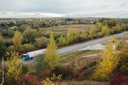 beautiful view of the road from a height. autumn