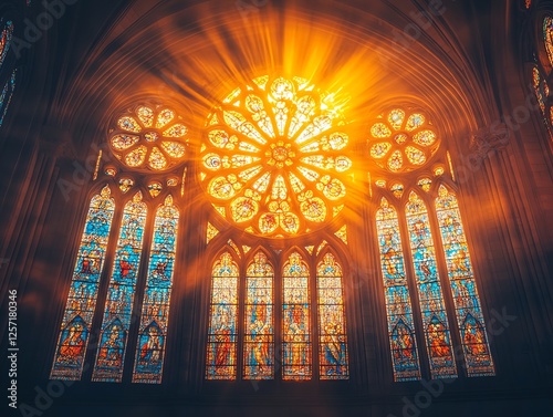 Glorious Stained Glass Rose Window Cathedral Sunlight