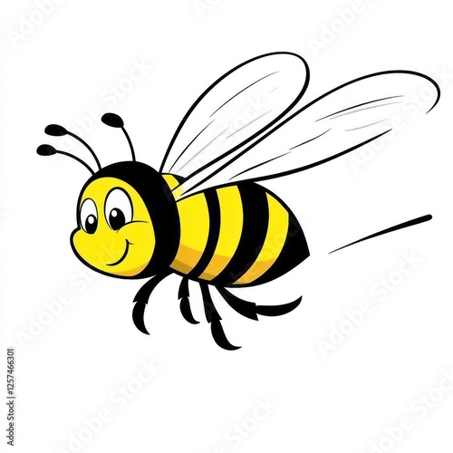 Cartoon bee in flight against white background, for children's book illustration or educational materials