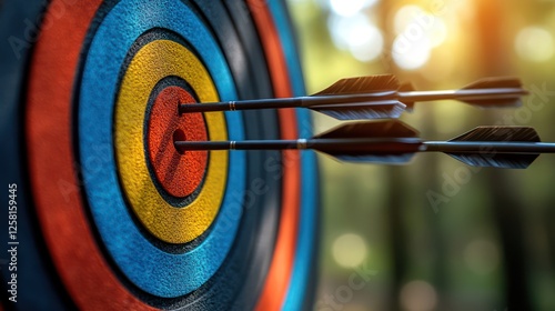 A target board with vibrant, colorful rings of red, yellow, and blue under the sun.