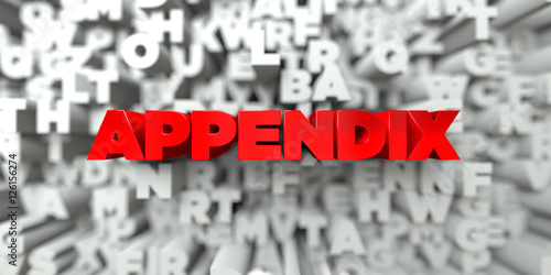 APPENDIX - Red text on typography background - 3D rendered royalty free stock image. This image can be used for an online website banner ad or a print postcard.