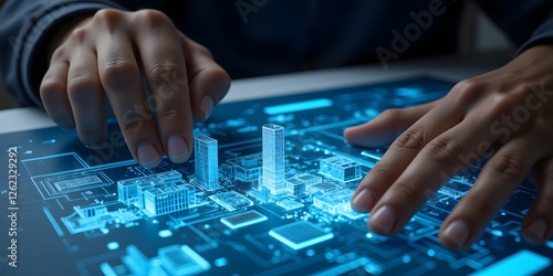 #1150899854An architect makes models of buildings for the development plan of a rural town