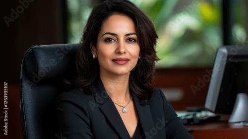 Dynamic and Confident Indian Female Business Leader Interacting in a Professional Office Environment Amidst Technology and Modern Furnishings