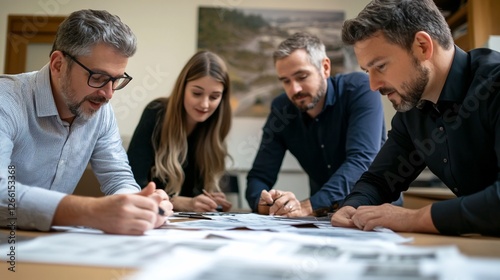 Professional Business Team Collaboration Analyzing Documents in Office Space