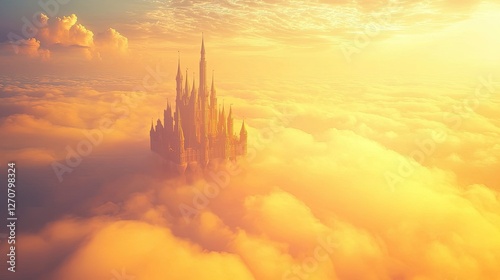 Majestic Castle in the Clouds with Golden Sunrise Atmosphere