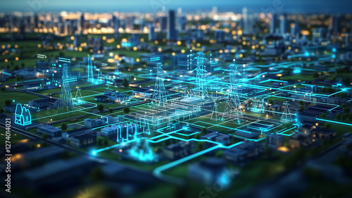 家庭・企業・公共施設をつなぐスマートグリッド – 未来の電力インフラCGイメージ