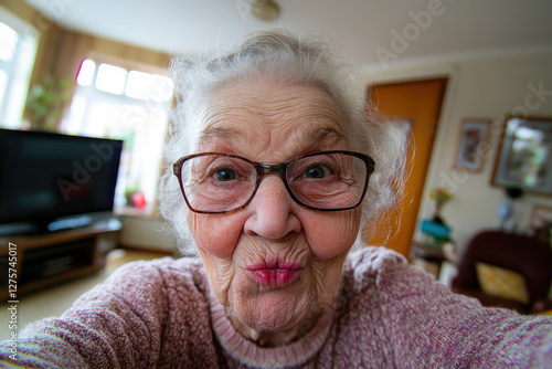 Gros plan amusant d'une femme âgée avec de grandes lunettes et expression joyeuse