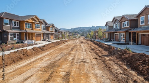 New suburban street under construction with houses.