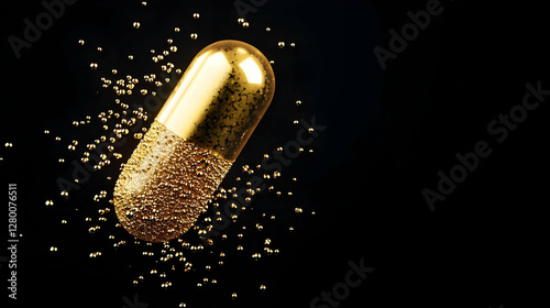 Probiotic Capsule Dissolution, a close-up view showcasing a capsule breaking apart, releasing beneficial microorganisms into a solution.