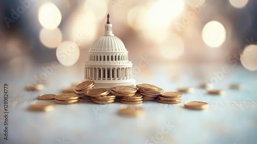 US Capitol Building Model with Gold Coins Finance Budget Politics