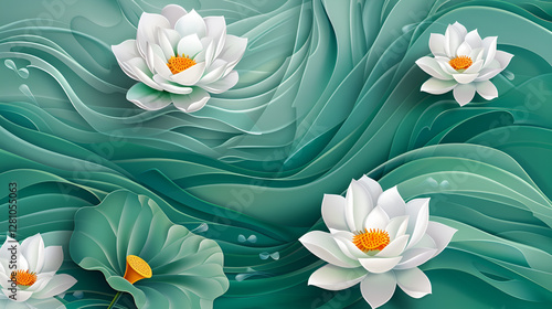 Artystyczna kompozycja lilii wodnych na falującym tle.