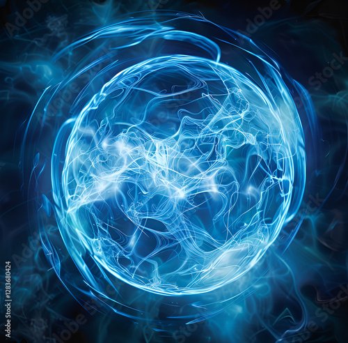 Energetyczna kula z niebieskimi elektrycznymi wyładowaniami.