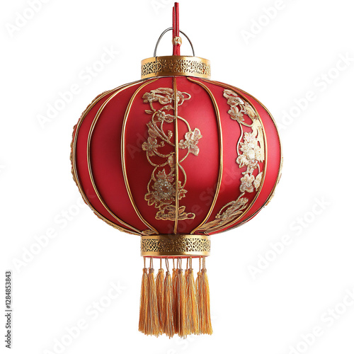 Red Chinese Lantern with Gold Trim Isolated on Transparent Background