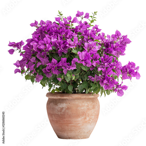 Vibrant Potted Bougainvillea with Purple Flowers Isolated on Transparent Background