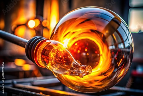 Artisan Glassblowing: Molten Glass Bubble on a Tube, Close-Up Studio Shot
