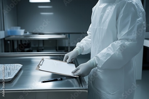 Criminal investigation pathologist preparing an autopsy in a sterile morgue. Featuring professionalism and care