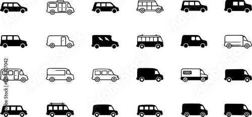 minibus icon in different style vector illustration. two colored and black minibus vector icons designed in filled, outline, line and stroke style can be used for web, mobile, ui