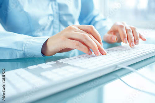 Woman office worker typing on the keyboard
