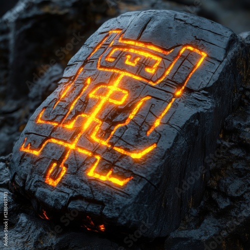 Glowing Ancient Symbol on Textured Dark Stone Surface