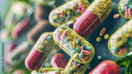 Probiotics improving digestion and gut health with beneficial bacteria.