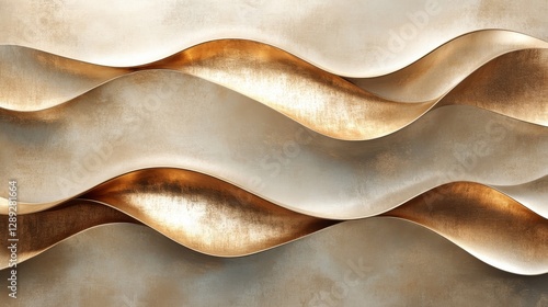 Golden metallic waves undulate as an abstract artistic design element