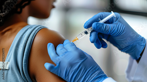 close-up of a woman being injected with a vaccine into her arm by a doctor. Concept of health care and disease prevention