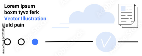 Cloud with documents, progress bar, and check mark symbolizing task completion. Ideal for project management, data storage, digital transformation, task tracking, workflow optimization, progress