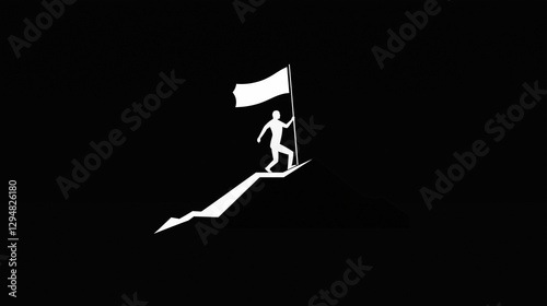 Mensch mit Flagge erklimmt einen Hügel in minimalistischer Darstellung