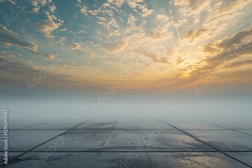 Endless Golden Skyscape Texture on Foggy Cement Surface Backdrop