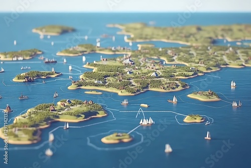Scenic archipelago with sailboats in a bright blue ocean aerial view