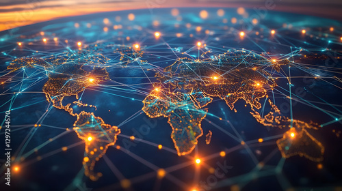 Intricate global value chains connecting manufacturers, suppliers, and distributors across borders - conceptual illustration of international trade and supply chains