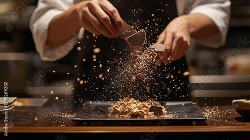 高級レストランでシェフが削る芳醇なトリュフの瞬間