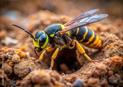 Oxybelus Uniglumis Wasp Building Nest - Detailed Close-up Documentary Style