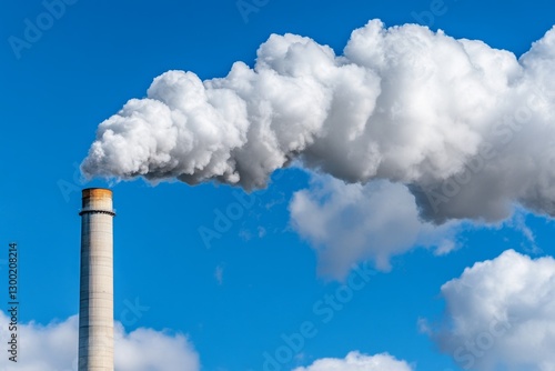 A close-up of a factory emitting thick black smoke into the sky, contributing to the greenhouse effect