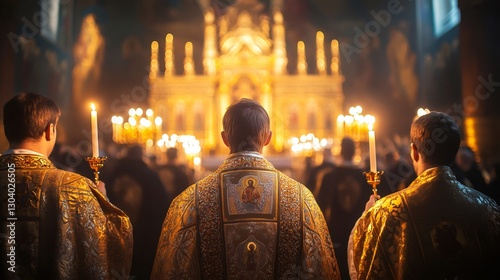 Priests holding candles during a ceremony in Orthodox Church