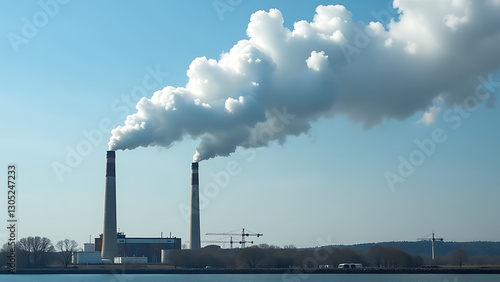smokestacks emit white clouds polluting air contributing global warming issues worldwide