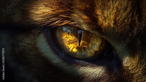 Extreme close-up of a wild cat's golden eye / 野生ネコ科動物の黄金色の目の超クローズアップ